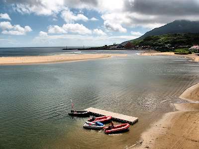 ![]() 福隆漁港旁的東興宮 | ![]() 東興宮前的小沙灘 |