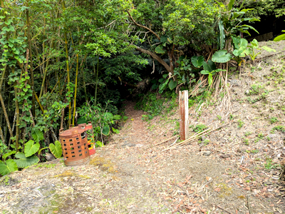 ![]() | 接天廟座向的右後方,有條隱密的山徑古道,該山徑為通往舊石空聚落的古道,目前看起來好像不太好走,感覺沒什麼在整理的樣子,詢問廟方人員,古道可以走但不好走, 廟方建議還是走產道前往舊聚落。 |