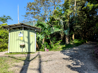 鐵皮簡易搭建的廁所,提供遊客應急使用。