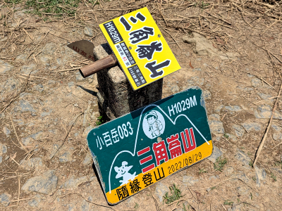 約三百多公尺的稜線山徑,登頂海拔標高約 1029 公尺的三角崙山,這就是在聖母山莊所展望的抺茶山,三角崙山為編號 83 號小百岳,山頂立有三角點基石。