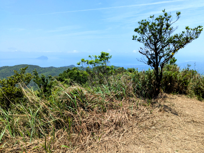 這條三角崙山箭竹稜線,全線完全沒有遮蔽的地方,好天氣就得接受烈日曝曬,但景色真的很棒,除了可展望連綿群山外,還能眺望太平洋及龜山島。