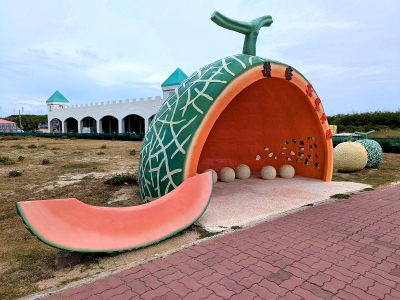 只能從後寮漁港的通道進入,來到後寮遊客服務中心,馬上就被哈密瓜車站給吸引,這個公車站真的創意十足,後寮是澎湖產哈密瓜的地區,直接使用哈密瓜當公車亭造型,除了吸睛打卡外,
