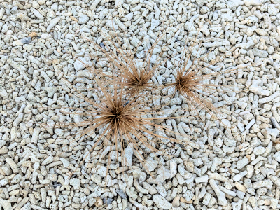 進入往天堂路的貝殼沙海灘,沙灘上可看到風吹滾動的「風滾草」,當地人稱為「鳥鼠草」,風滾草最後會聚集在一起,形成很壯觀的草堆景觀。