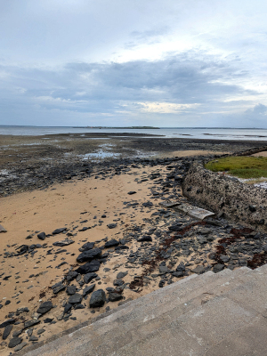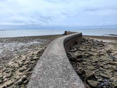 經貝殻沙灘來到舊東港的碼頭,所謂天堂路就是廢棄的一段海堤,很巧妙的堤防曲線延伸入海,但今天到訪是退潮時段,沒有海水淹沒的天堂路景觀,所以後寮天堂路要挑正確的潮汐時間,