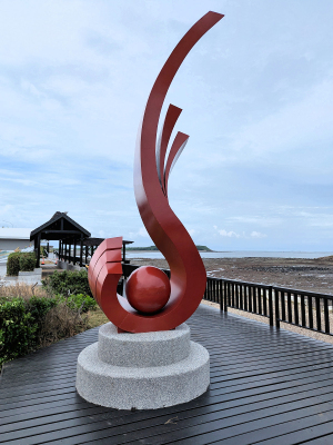 只有看到風力意象地標物,不過這裡的海濱景色還不錯,也有完善的涼亭及公廁可供使用。