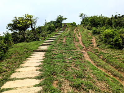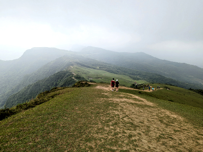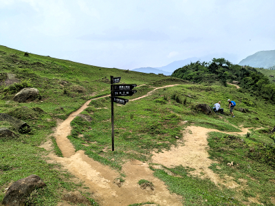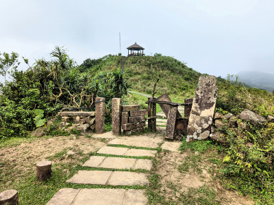 |  | 前方為單面山涼亭,草原出口設有防牛隻的柵欄,穿過柵欄先前往涼亭避小雨,天候還是不穩定,深怕遇到大雨,放棄前往鹿窟尾尖,原路回到桃源谷停車處, 取車下山打道回府,回程中道路像是洗過一般,原來先前還真的下過大雨,而桃源谷卻是只有飄些小雨,算是幸運的躱過被雨淋。 |