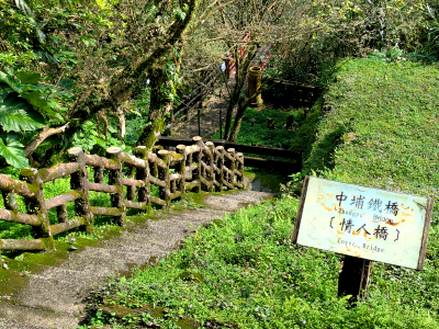 紅色造型的中埔鐵橋,跨越基隆河連接兩岸,老街的對岸昔日是礦工寮,這座鐵橋是唯一的通道,所以成了男女約會的地點,因此這座中埔鐵橋又稱為情人橋。