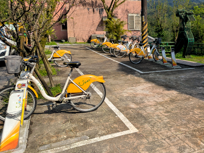 原路回到菁桐礦業生活館,YouBike 菁桐老街站就在展館旁空地,配置的車輛為 27 輛。