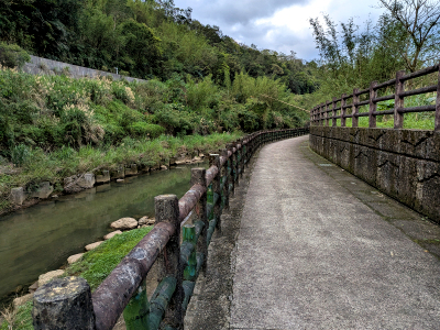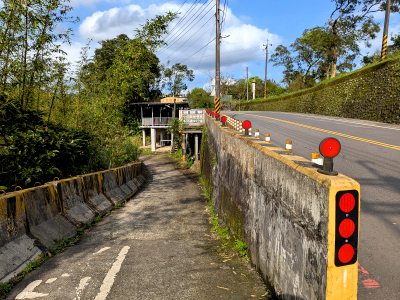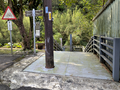 嶺腳自行車道接近嶺腳終點處,需透過階梯推上到嶺腳台車道,這設計有點不合乎無障礙要求,若是身障者就只能回頭,應該是要做一個平緩斜坡道才對。