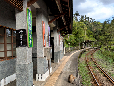 嶺腳車站是無站務人員的車站,進入及離開車站月台,需自行感應票證支付,今天的騎遊終點就是嶺腳車站,在此等候平溪線火車打道回府。