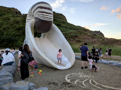 基隆潮境環保復育公園,這裡曾是八斗子的垃圾掩埋場,如今則是結合虛擬技術的生態公園,基隆市政府在此建置了一座 AR 恐龍生態園區,恐龍不是早就滅絕了,那來的恐龍生態可觀,