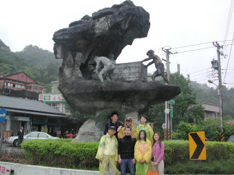 |  | 2003.11.23 菁桐這個小村已來過不知多少次了,唯獨菁桐古道一直沒機會去走走, 趁著遊山玩水探訪隊的行程,今天就要光臨探訪這條菁桐古道,上午出門時是陰天, 車行過雙溪口後,天空開始飄起雨來了,看來這基隆河的源頭菁桐,也是雨天的氣候, 於 10:00 左右到了菁桐火車站集合,今天應該總共會有 10 個人,及一條母狗才對, 結果等待到 10:30 確定為 8 個人,新朋友 Puppy 沒來,老張有事去參加喪禮上香, 那就不再等待了,先來拍張團體照做紀念吧(我在拍照所以沒入鏡). |