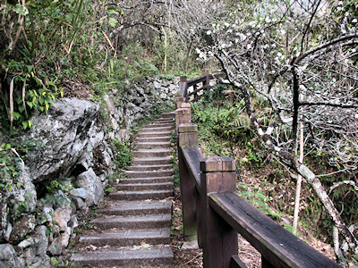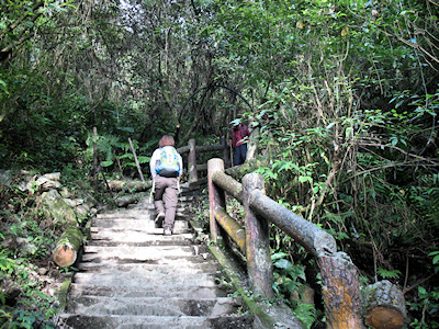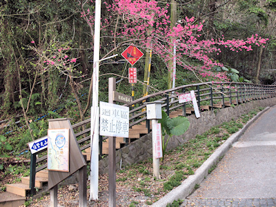 ![]() | 由情人谷開始陡上的水泥階步道,步道上溪水四溢,感覺上溼溼滑滑的。 |