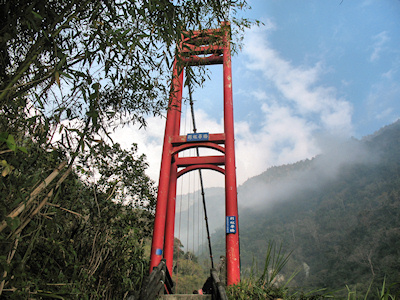 ![]() | 步道來到橫跨陳有蘭溪支流的彩虹吊橋,吊橋的橋墩非常的高,紅色的橋身非常的顯眼,吸引了許多遊客在此拍照留影。 |