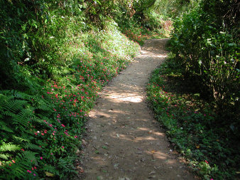 ![]() | 真是一條好走又平緩的山道,沿途沒有什麼陡坡之類的,還可以見到有人在山道上慢跑,看來真是不負高速公路之名, 山道沒有多少人工的設施,沿途皆走在樹蔭之下,山道兩旁也長滿了花花綠綠的花草,非常適合全家一起郊遊健行, 今天雖然豔陽高照,卻也有涼爽的山風,輕鬆漫步在其中,享受著大自然的禮物. |