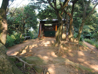 ![]() | 順著山道不知不覺走到一個山頭,山頭上搭建了一間休息亭,有趣的是,該休息亭被取名為泰安休息站, 配上這條山道高速公路,還真是非常有創意,由休息亭處可以望見大棟山頭的發射台,那個發射台建築還真大. |