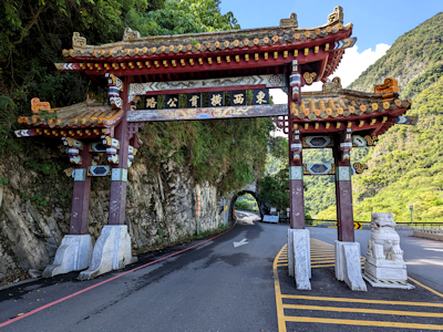 ![]() | 2022.09.26 離開新城老街前往太魯閣國家公園,途中收到蘭嶼民宿傳來的訊息,因為疫情期間的管制,民宿要求出示接種疫苗證明,這部份個人有接種 3 劑是沒問題, 問題在朋友 1 劑都沒接種,好在民宿業者接受入住前快篩,當日在車上立即做快篩,並且將快篩結果傳給民宿,才獲得蘭嶼民宿的准許。 車行來到東西橫實公路牌樓處,這裡算是個熱門的拍照點,記憶裡,以前這裡有原住民會穿傳統服裝,遊客可以付費要求合照,現在好像已沒有看到了, 太魯閣牌樓右邊為跨越立霧溪的錦文橋,前方道路岩洞處車道狹窄,一次只能容一輛車經過,一般車輛會走錦文橋經砂卡礑來閃過這處岩洞車道。 |
