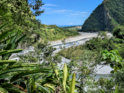![]() | 木棧步道視野開闊處,可以展望立霧溪出海口,而且還能看到大海。 |