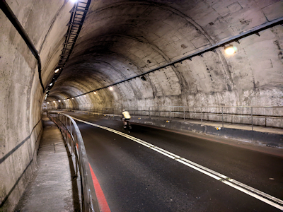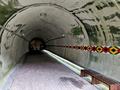 ![]() | 步行隧道內的人行道,一路回到停車場取車,下個目的地為布洛灣台地,經由西拉岸隧道進入中橫公路,這才發現西拉岸隧道內,也被規劃為停車空間, 對於假日的停車需求上,確實是會有幫助的。 |