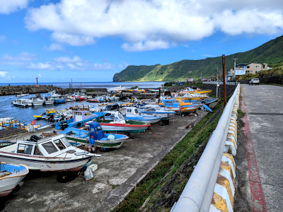 |  | 早餐還沒進食,下了船後感到有點餓了,蘭嶼島上有二間 7-11 便利店,最近的一間就在開元港附近,查了一下地圖,環島公路往北行就會到達, 開元港裡停泊的船艇也不少,這些都是捕魚的船隻吧。 |