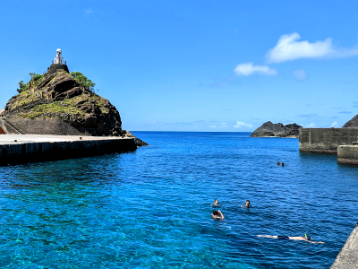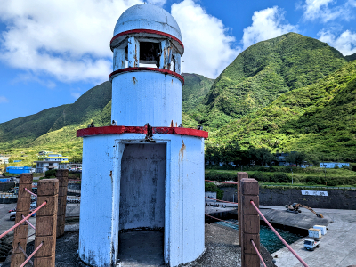|  | 回到開元港的碼頭,準備要物色租用機車,看到一座癈棄的燈塔建物,形體還立在岩石上,那就是蘭嶼的舊燈塔,舊蘭嶼燈塔下方為舊開元港的港口區, 有不少遊客會在此港口區浮潛跳港。 |