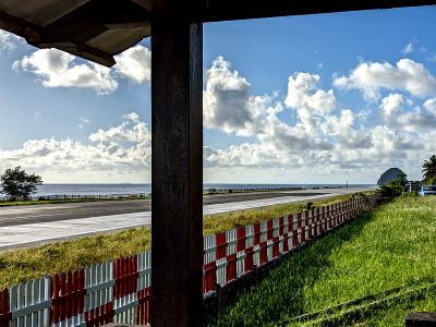 |  | 航空站機場跑道旁有座涼亭,是觀看飛機降落及起飛的地點,飛機會從饅頭岩方向進場,至於跑道的起飛方向,則依當時氣流的情況而定。 |