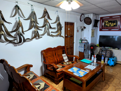 |  | 選擇住在野銀聚落的民宿,是因為位在蘭嶼的東部,想說早起可以順便看日出,民宿是蘭嶼在地人經營的,客廳掛滿了羊頭,問過主人代表意義為何, 簡單的說就是有錢人啦。 |