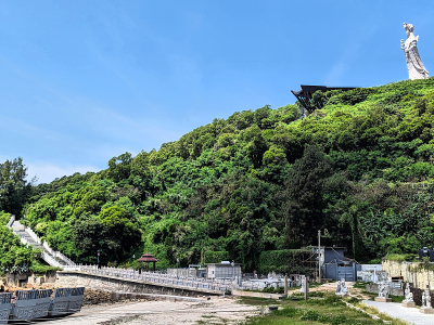 港口旁可見一條長長的步道,該步道稱為「祈福步道」,步道連接港口邊的天后宮,以及山頭上的媽祖巨神像。
