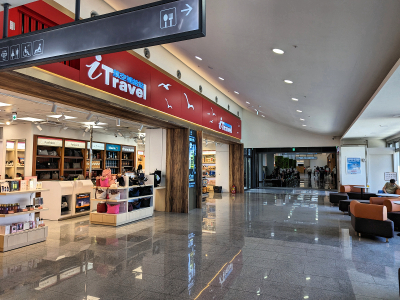 機票費用是船票的一倍,但是時間只要五十分鐘,搭飛機比較容易受天候影響,天候不良就會取消班機,機場設備完善,座位休息區都配有電源座及 USB 座。