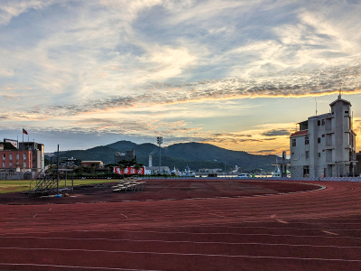 馬祖各據點的開放時間,大都在下午四點半關閉,黃昏時段經過「福澳運動場」,運動場就在福澳港的旁邊,今天的天空彩雲變化多,停下腳步欣賞一下。