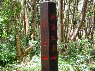 ![]() | 去年於茅草棚前並未見到任何指標,今天在茅草棚往山頂中間,則發現到了叉路的路線指標,指標寫著叉路往朝陽社區, 沒走過,我想看看這條叉路的山入口是在那裡,於是提議大家走這條路線下往朝陽社區看看。 |