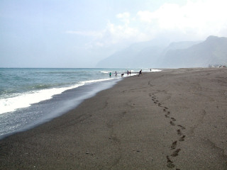 來到了南澳,當然要拜訪一下所謂的神秘海灘,由湧泉池走到神秘海灘不遠,海岸及沙灘的自然景觀,漫步於深色的沙岸,