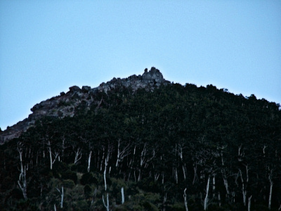 ![]() | 2005.11.11 凌晨五點半左右,雨傘大哥已開始準備早餐了,其他人也陸陸續續的起身盥洗,在偶然的情況下,仰望關山嶺山附近時, 突然發現一座極像金瓜石茶壺山的山頭,真的是愈看愈像,馬上拉了蕭郎大哥一起來看,蕭郎大哥拿出了 GPS 比對該山頭的位置, 原來該座像茶壺山的山頭叫溪頭山,想要見識溪頭山像茶壺山的話,一定要在清晨尚未清晰前,由埡口山莊仰望溪頭山。 |