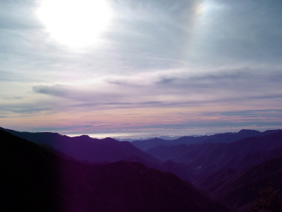 ![]() | 中途休息時,回頭觀看大關山隧道方向的景觀,這裡可是有聞名的關山日出,只是我們日出後才出發,所以看不到關山日出的景致, 但可改欣賞關山的雲海景觀。 |