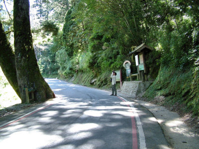 ![]() | 上午十一點來到塔關山登山口,這塔關山登山口前有棵紅橧巨木及台灣雲杉,非常的好辦認,此地約在南橫公路 147 公里左右, 此公路段亦有個檜谷的稱號,照片中忙著拍照取景的人,就是獨步山林網站的站主蕭郎。 |