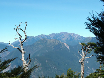 ![]() | 山徑中途視野開闊處,可以遙望雲峰、玉山一帶群山景觀,塔關山是欣賞鐵杉林不錯的地方。 |