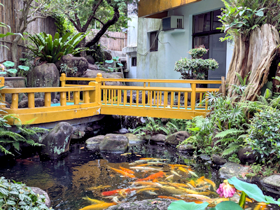 ![]() 前庭錦鯉魚池 | ![]() 蔣經國先生所贈「亮節高風」匾額 |