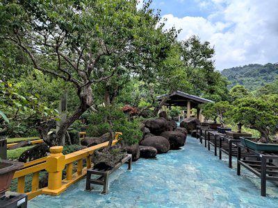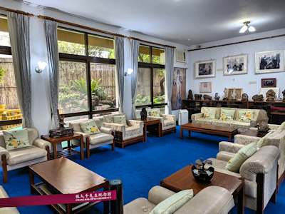 | 2025.07.13 朋友相約參訪摩耶精舍,也就是張大千先生紀念館,要參觀摩耶精舍需要在七天前,向國立故宮博物院官網線上預約,並且等待通知是否成行,每週只開放二個場次,週六及週日的上午十點三十分, 每場次人數限十五人,最少要五人才會成團;三天前收到成團通知,集合地點是在台北市士林區至善路2段342巷口,也就是巷口的至善橋頭社區警術室,故宮導覽的工作人員準時清點報到人數, 告知社區警衛室參觀人數後,一群人就跟著來到摩耶精舍的大門口。 導覽人員在大門口說明參觀事項,並且解說摩耶精舍的由來,簡單的說就是張大千先生回台定居,選定在外雙溪這塊地建宅第,其本身有出家過,法號為大千,也就是張大千名號的由來, 摩耶在佛教有大千幻象之意,而精舍就是僧侶或居士修行的場所,所以原本的大千精舍就命名為摩耶精舍;踏入前庭首先看到一輛古董車,那就是生平使用的座車,這整座建築房舍的格局, 全都出自於張大千先生設計,庭園完全是中國風格的庭園,進入房舍前導覽人員指著門口上方,那是蔣經國先生所贈的「亮節高風」匾額,這匾額怎麼跟想像的不同;大會客廳掛滿了歷史圖像照片, 原來張大千有跟畢卡索交流過,果然是大師等級的交手;來到大畫室,塑造了張大千正揮毫作畫的蠟像,旁邊還有隻靈猿寵物標本,牆上掛著一幅「廬山圖」復製品,這幅畫作是生平最後的作品, 真品是蒐集在故宮中保存。 來到溪岸旁的後庭園,張大千的骨灰就放置在梅丘靈厝中,角落的烤亭為烤肉的地方,前方立有一座「大千居士乞食圖」石碑,亭內還放置有醃製四川泡菜的陶甕;這塊地巧妙的是剛好被外雙溪圍繞, 外雙溪在此分左右股溪流,圍繞流經這塊地後又合流為一條溪,感覺像是護城河一樣,就被大千居士給看上長居長眠於此,至於曾經飼養的動物,長臂猿、錦雞、灰鶴皆已不在了。 整個導覽行程約一個小時,在參觀過程中,個人怎麼覺得有似曾相識的感覺,這裡面的景物樣貌印象中有看過,但是個人我曾經有來過嗎?如果有來過應該會有遊記,難道是個人寫遊記前參觀過, 怎麼一點印象都沒有,還是說是在夢境中浮現的,若是夢境中浮現的也太神奇了,這等於是夢見未來了。 | |
