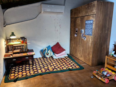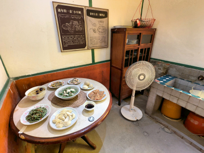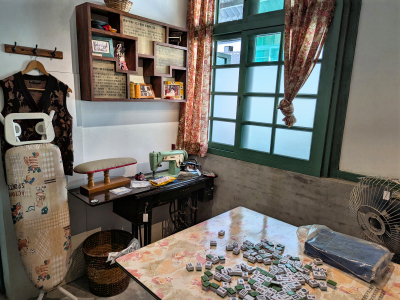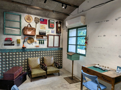 參觀到一處綠意盎然的休憩平台,突然看到標示昔日為太平間,嗯!當下心理是有點怪怪的,但現在完全沒有那個陰深深的感覺,常設展廳主要呈現當時眷村生活樣貌,個人並非眷村長大,